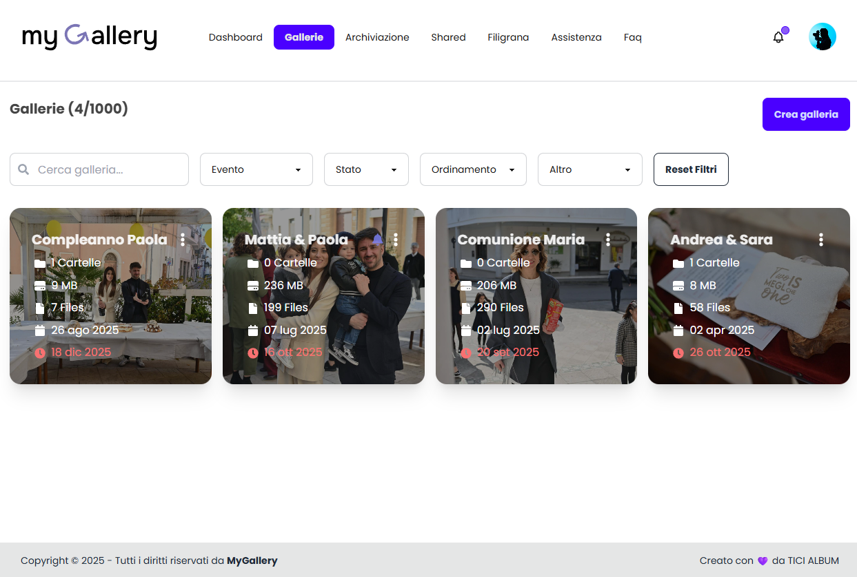 Scopri di piùNessun limite, solo possibilità infinite. My Gallery offre la possibilità di creare infinite gallerie condivisibili per le tue immagini.