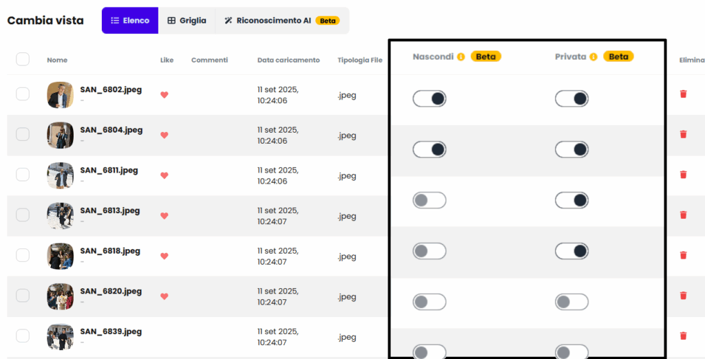 Risparmia tempo con il nostro strumento proprietario di riconoscimento dei volti con intelligenza artificiale. Uno strumento indispensabile per ottimizzare il tuo flusso di lavoro, raggruppare le foto e i volti e creare in automatico le cartelle con le persone desiderate.